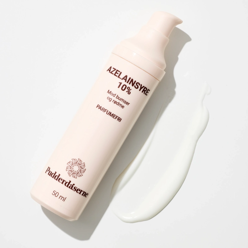 Pudderdåserne Azelainsyre 10% går herunder ind og mindsker, renser og forebygger nuværende samt kommende udbrud i ansigtet, og ikke mindst beroliger huden efter påføringen. Den har en meget let konsistens, som absorberes hurtigt i huden og skal påføre før serum og ansigtscreme.