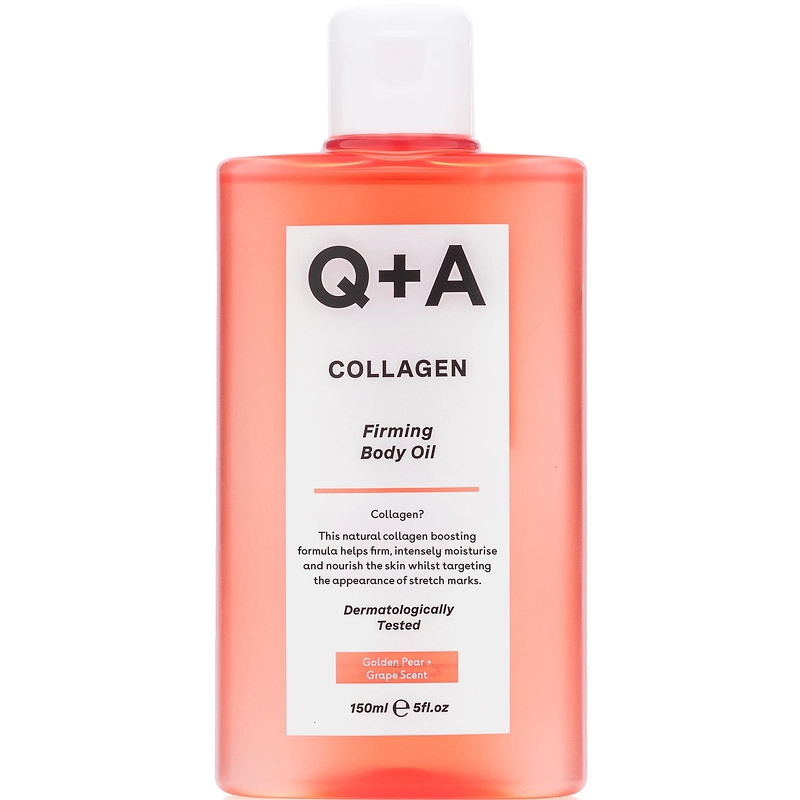 Collagen Body Oil fra Q+A er en nærende kropsolie med plantebaseret kollagen, der hjælper med at fugte og forbedre hudens smidighed for en blød og sund hud. Plantebaseret kollagen, der understøtter hudens fasthed og elasticitet og hjælper med at reducere forekomsten af strækmærker. Formuleret med vegetabilsk kollagen, hudfornyende immortelleolie og fugtgivende Omega-9, som tilsammen efterlader huden glat og revitaliseret.