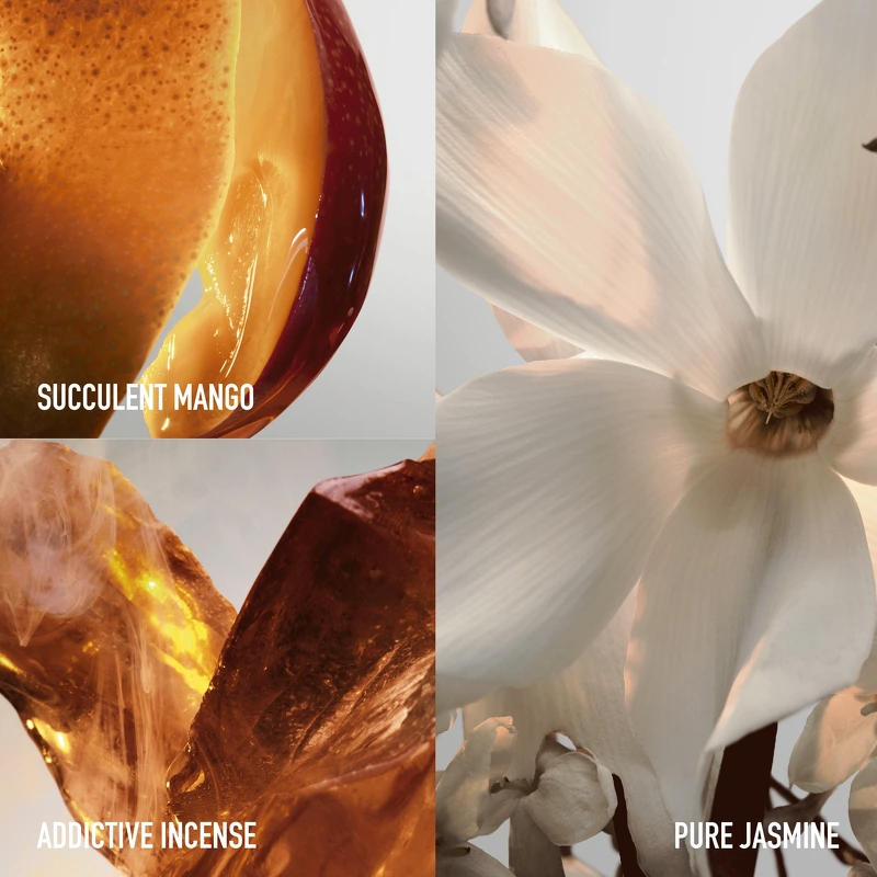 Essensen af avantgarde-luksus, fyldt med udsøgte ingredienser. En uimodståelig duft, der stråler af dristig sensualitet, hvor saftig mango, ekseptionelt ren jasmin og afhængighedsskabende, cremet røgelse smelter sammen. Parfumen er lavet i Grasse i Frankrig med 90 % ingredienser af naturlig oprindelse.