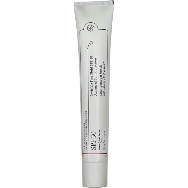 Raz Skincare Invisible Face Fluid SPF 30 er en ultra-letvægts ansigts SPF fluid, som tørrer på 30 sekunder og absorberes som et let serum. Den leverer ultimativ beskyttelse med en usynlig fornemmelse.
