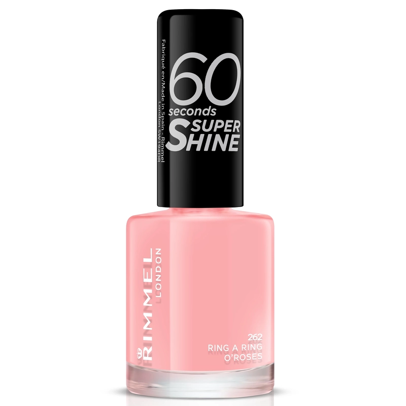 Rimmel 60 Seconds Nail Polish - 262 Ring A Ring O'Roses giver superglansfulde negle, Denne hurtigtørrende formel giver dig en strålende glans med bare et strøg. Med en langvarig holdbarhed på op til 10 dage er det den ideelle løsning for travle dage. Giv dine negle et øjeblikkeligt løft med Rimmel 60 Seconds Nail Polish - hurtigt, nemt og stilfuldt!