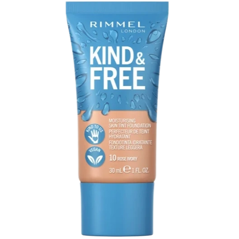 RIMMEL Kind & Free skin Tint - 010 Rose Ivory er Rimmels første rene foundation som er 100% vegansk og cruelty-free. Denne serie er fri for parfume, mineralske olier og animalske ingredienser. RIMMEL Kind & Free Skin Tint er Fremstillet med 77 % ingredienser af naturlig oprindelse.