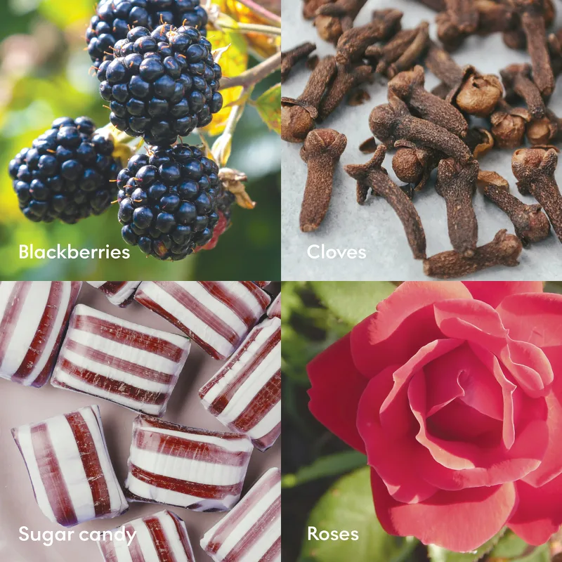 • Med duftnoter af brombær, rose, sukkerslik og nelliker