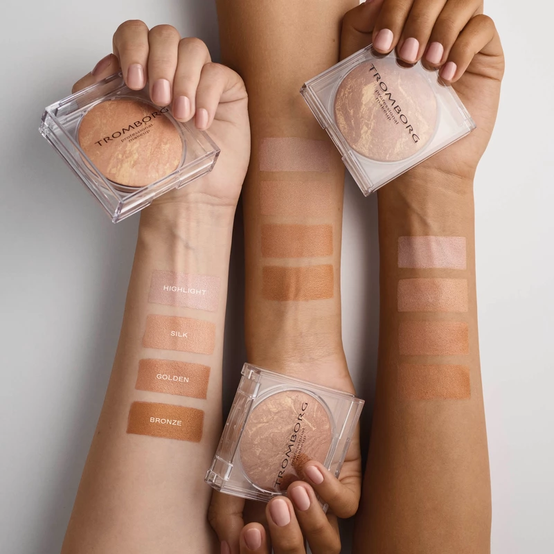 Tromborg Baked Mineral findes i flere farver, som hver især kan tilføre din hud en uimodståelig, transparent og yderst holdbar finish, og giver dig et væld af anvendelsesmuligheder. Blandt andet er de lyse nuancer velegnet til at highlighte de høje punkter i ansigtet eller give huden et retoucheret look. De mørke toner kan for eksempel bruges som solskinspudder, der tilfører huden en varm glød, eller til at lave naturlig contour og skygger, som smukt kan forme og indramme dit ansigt.
