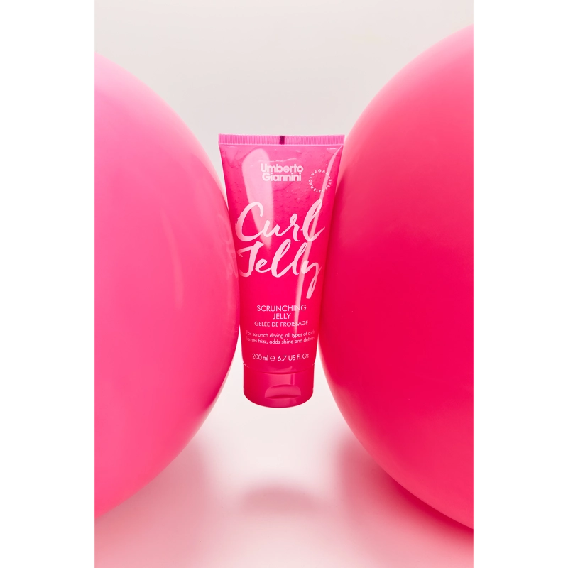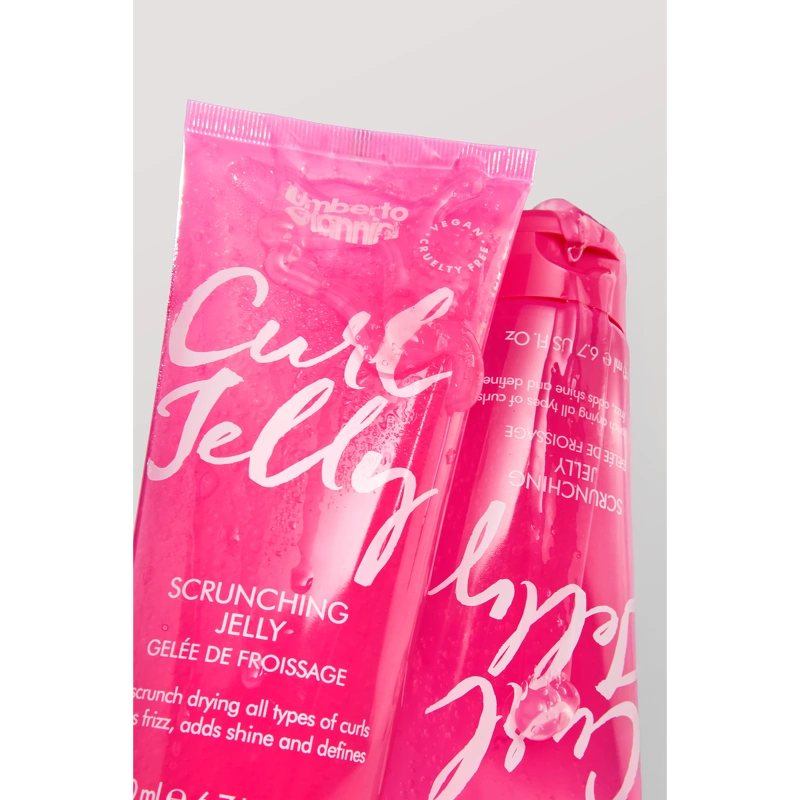 Curl Jelly Scrunching Jelly er bestselleren fra Umberto Giannini. Gelen har en mild duft af lavendel og patchouli med vanilje. Velegnet til hår med bølger og alle typer krøller. Velegnet til naturligt hår, såvel som hår der er blevet farvet, kemisk behandlet og til hårextensions.