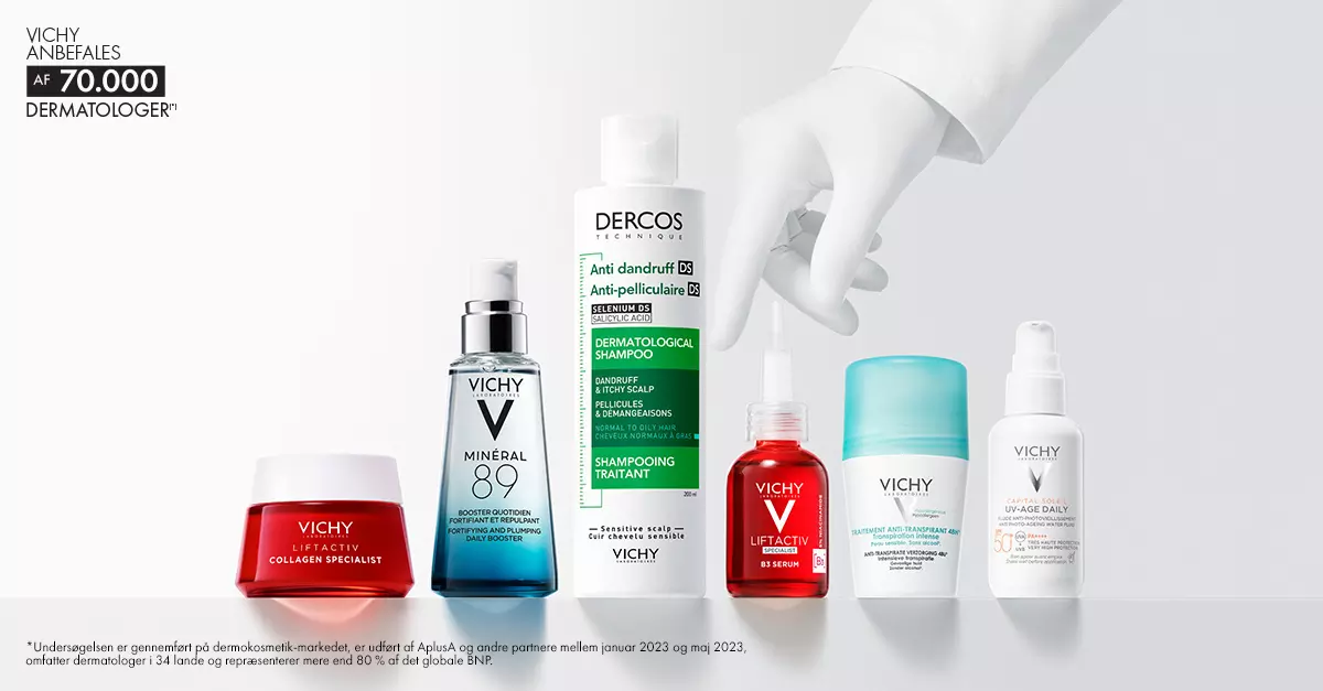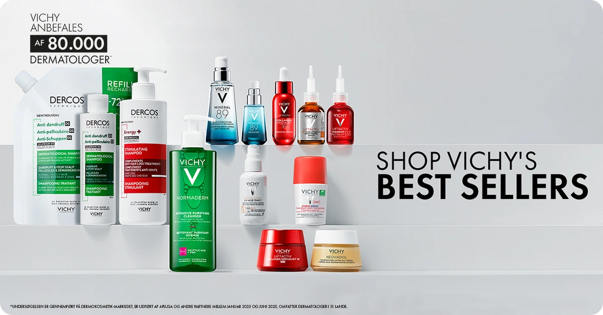 Prøv de fantastiske produkter fra Vichy Laboratories – et af verdens mest anerkendte mærker inden for dermatologisk hudpleje. Med udgangspunkt i hudforbedrende egenskaber fra vulkansk vand, skaber Vichy produkter, der plejer og styrker forskellige hudtyper i alle stadier af livet. Gå på opdagelse blandt de effektive produkter, så du kan mærke og se forskellen på din egen hud.
