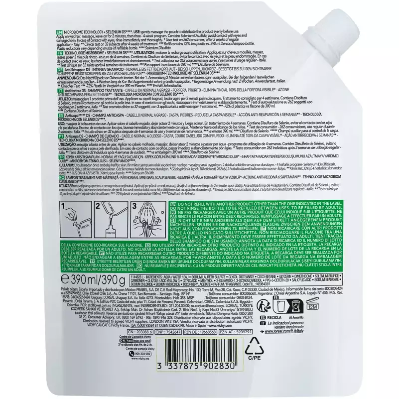 Vichy Dercos Technique Anti-Dandruff Shampoo Normal/Oily Hair Refill er en skælshampoo til mænd og kvinder med en normal til fedtet hårtype, som ønsker at modvirke skæl og ubehag i hårbunden.