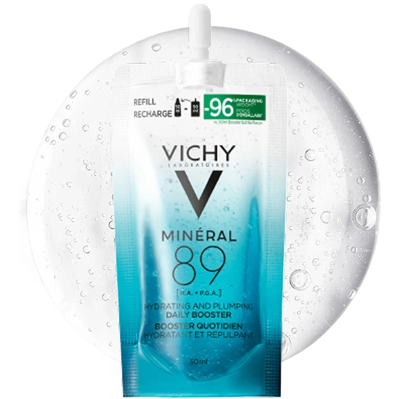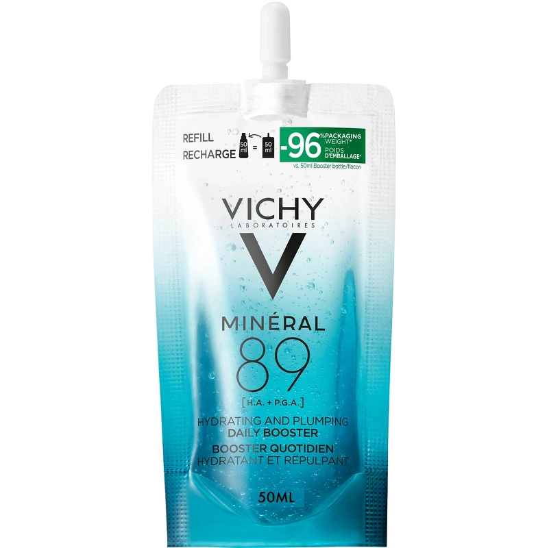 Vichy Minéral 89 Booster er en refill af Vichys fugtboostende serum, som er ideel til alle hudtyper med udtørret hud, linjer omkring øjnene eller på kindbenene, samt ved tendens til en rødlig og trist hudtone.