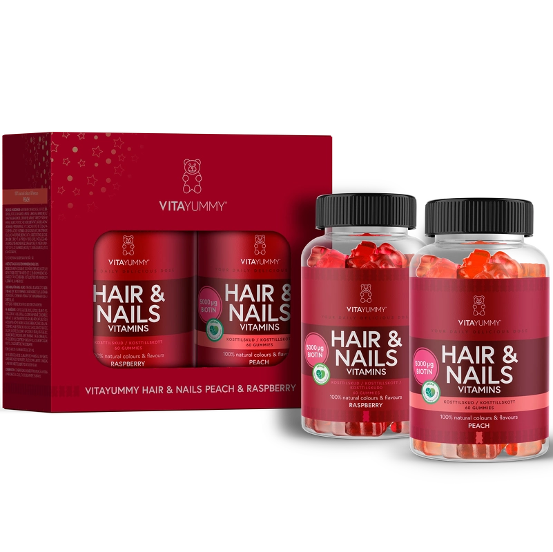 VitaYummy Hair & Nails Gift Box 2 x 60 Pieces (Limited Edition) er en flot gaveæske med de populære VitaYummy Hair & Nails.