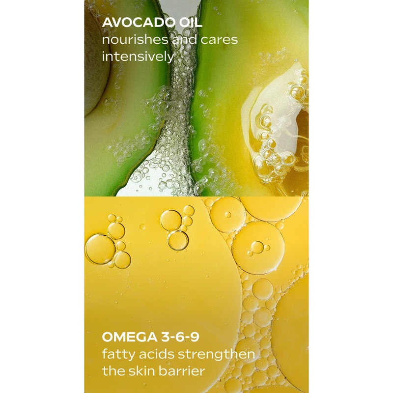 Dette hurtigabsorberende serum booster din hud med kraft fra omega-fedtsyrer og nærende avokadoolie, og er dit perfekte match, når din hud har brug for en ekstra dosis næring, og hudbarrieren skal styrkes.