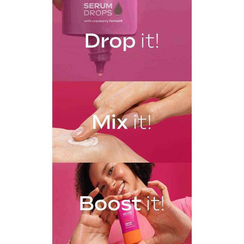 Dette serum er parfumefrit og en del af Weledas serie af højaktive Boost Serum Drops – din nøgle til en skræddersyet hudplejerutine! Vælg mellem fem unikke varianter, og tilpas nemt din rutine efter dine behov – uanset om du ønsker fugt, glød eller et solkysset look. Hele serien er både vegansk, dermatologisk testet og NATRUE-certificeret.