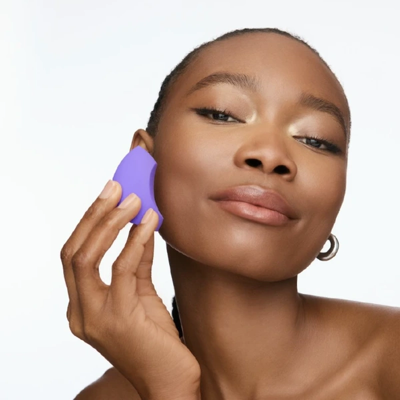 Wonderskin Curve Blender er en innovativ makeupsvamp med ergonomisk, buet form, der følger ansigtets konturer for en jævn og præcis påføring.